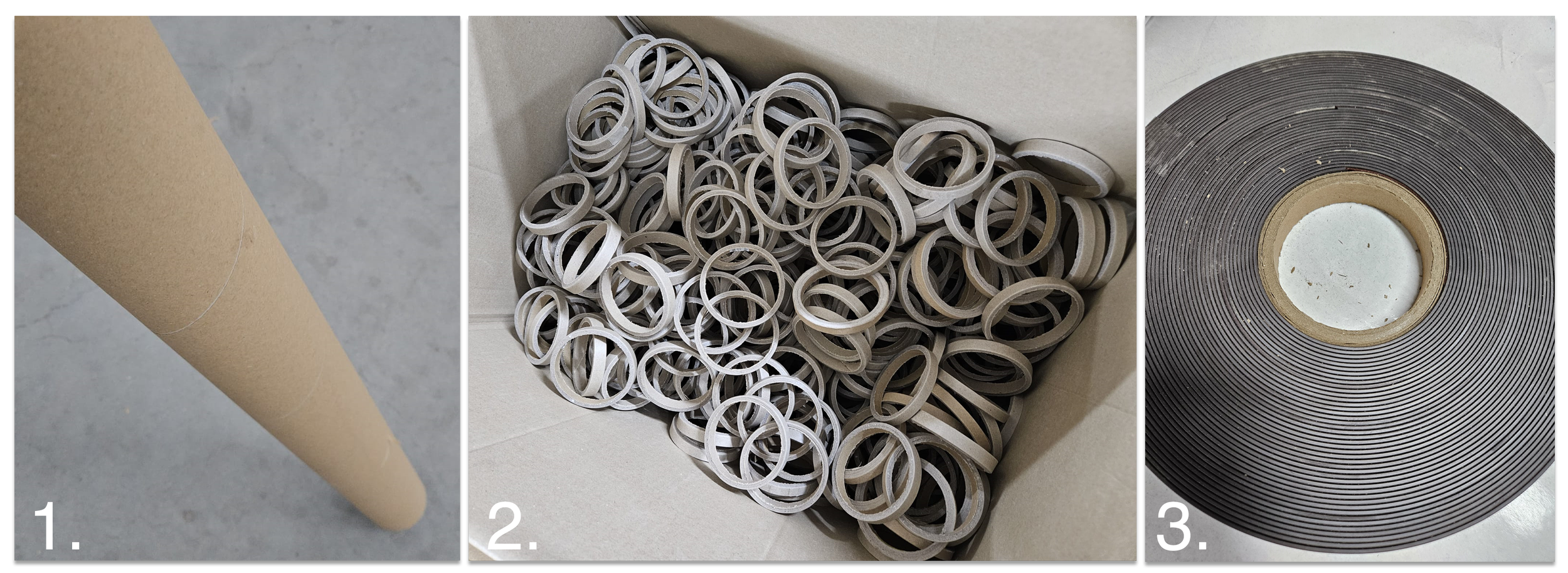 We repurpose our cardboard tubes by cutting them into smaller pieces, which are then utilized for our tape.